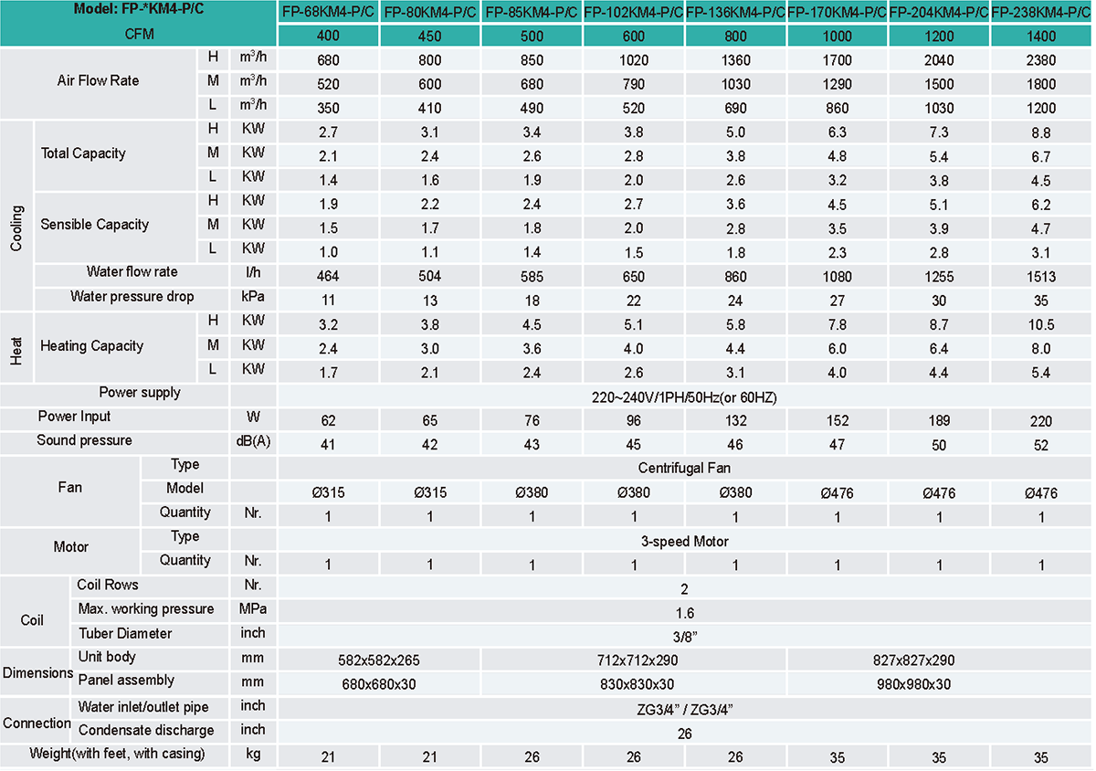 Suitable for hot/chilled water system, ceiling installation;