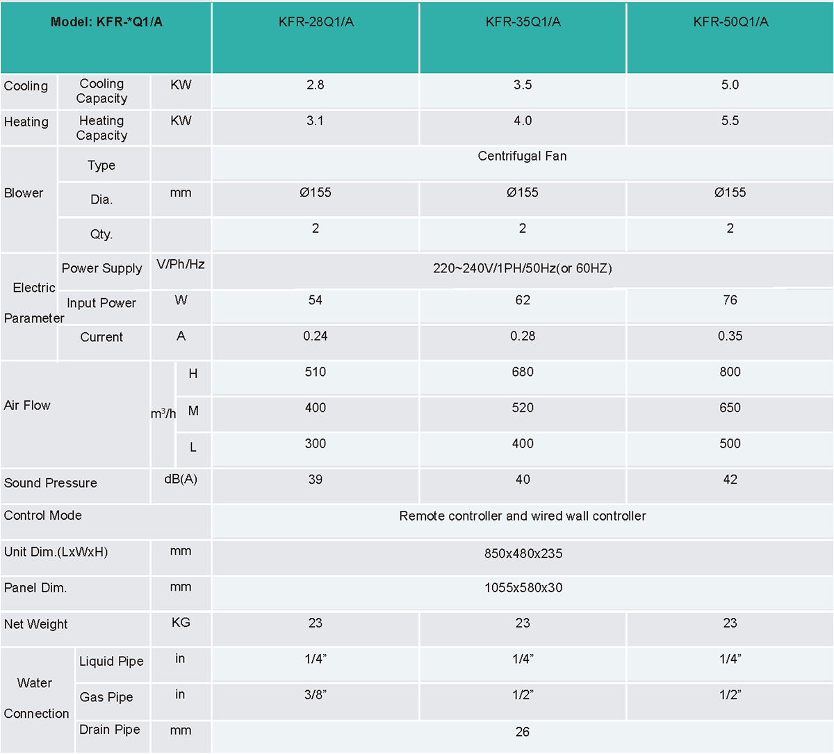 Heat Exchanger: Copper tube and hydrophilic AL fins, built-in or external electric expansion valve(optional)